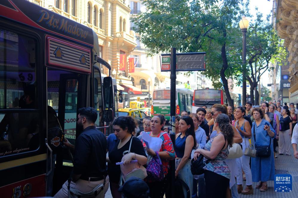 3月5日,在阿根廷首都布宜諾斯艾利斯,人們排隊(duì)搭乘公交車。新華社記者 張鐸 攝 布宜諾斯艾利斯市區(qū)當(dāng)?shù)貢r(shí)間5日凌晨發(fā)生大規(guī)模停電,上午短暫恢復(fù)供電后于中午12時(shí)50分左右再次停電,致交通信號(hào)燈關(guān)閉、部分學(xué)校停課等。布宜諾斯艾利斯地鐵運(yùn)營公司表示,所有地鐵線路自當(dāng)天凌晨起都處于中斷或變更狀態(tài)。