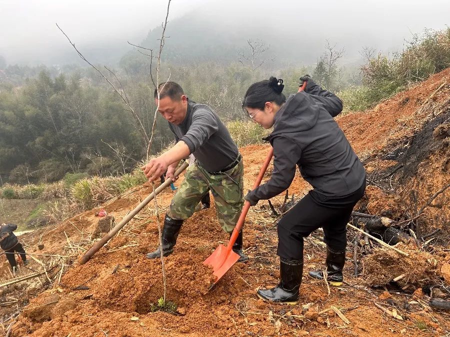 此次植樹活動,不僅為社區增添一抹新綠,更在居民心中種下綠色的種子,童子山社區將以此次植樹活動為契機,持續開展形式多樣的愛綠護綠活動,號召更多居民參與其中,共同建設美麗宜居的綠色家園。 小湖鎮 3月11日,建陽區小湖鎮政府以“綠”為名,向“美”而行,積極響應“弘揚雷鋒精神”的號召,到小湖鎮葛墩村朱源寺開展“多一片綠葉 多一份溫馨 第47屆植樹節你我同行”植樹活動。 植樹現場,揮鍬鏟土、運苗栽植、踏土夯實、覆土平整……大家有條不紊地采用“兩踩一提三埋” 植樹法,配合默契,一株株“綠意”點綴在道路旁,盡顯勃勃生機,用新綠呼喚春天來臨。本次活動共動員50余人在葛墩村朱源寺后山路口種植櫻花6株、烏桕、楓香、木荷各100株。
