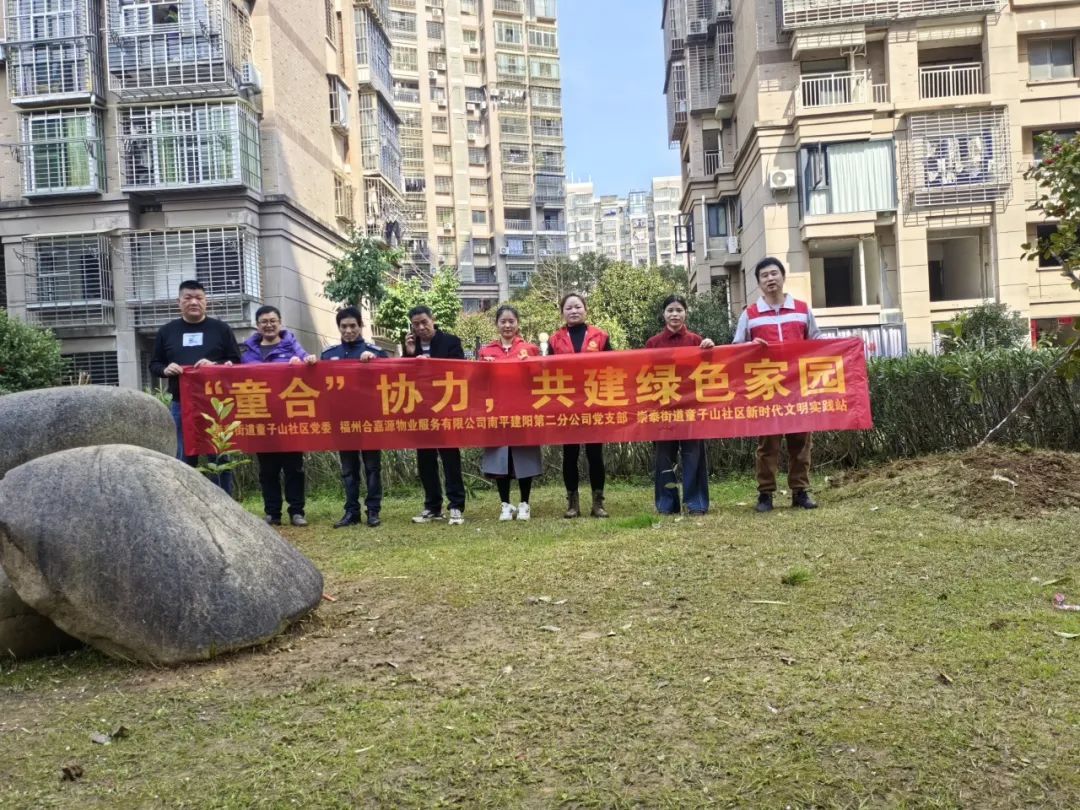 崇泰街道 3月12日,建陽區崇泰街道童子山社區聯合萬晟星城合嘉園物業在萬晟星城小區內開展“‘童合’協力,共建綠色家園”植樹節活動。