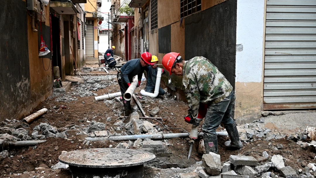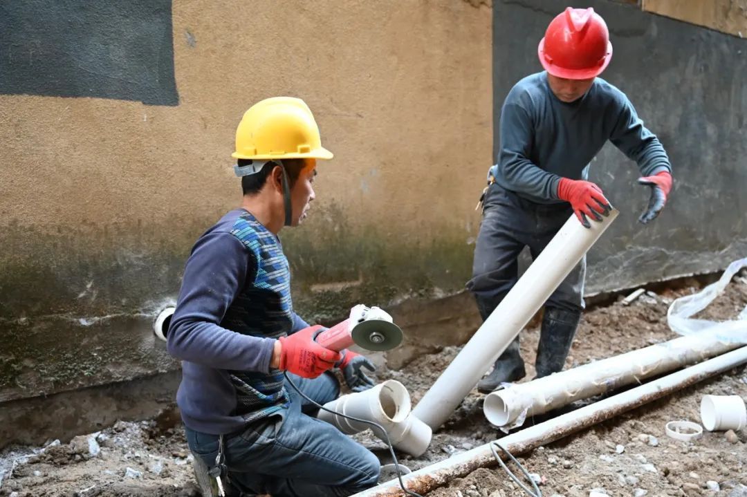 施工現場,施工人員正在進行雨污管網改造 2025年2月18日,南平市建陽區崇泰街道赤岸江厝片區老舊小區改造配套基礎設施一期建設項正式施工,使用機械設備與人工相結合的方式進行道路開挖,開挖后對小區內進行雨污管網改造、道路鋪設新瀝青等工作,預計2025年8月底前能全部完工。