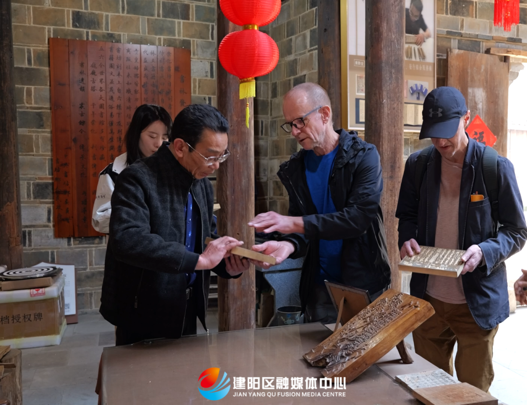 外國(guó)的專家學(xué)者們先后來(lái)到書坊鄉(xiāng)康寧古街、寒泉精舍、考亭書院、建盞文創(chuàng)園等地,通過(guò)實(shí)地參觀和走訪交流,深入感受建陽(yáng)作為“朱子故里”“建本之鄉(xiāng)”的文化魅力。活動(dòng)中,他們還親身體驗(yàn)了雕版印刷技藝,感受“兩把刷子”背后的匠人智慧。