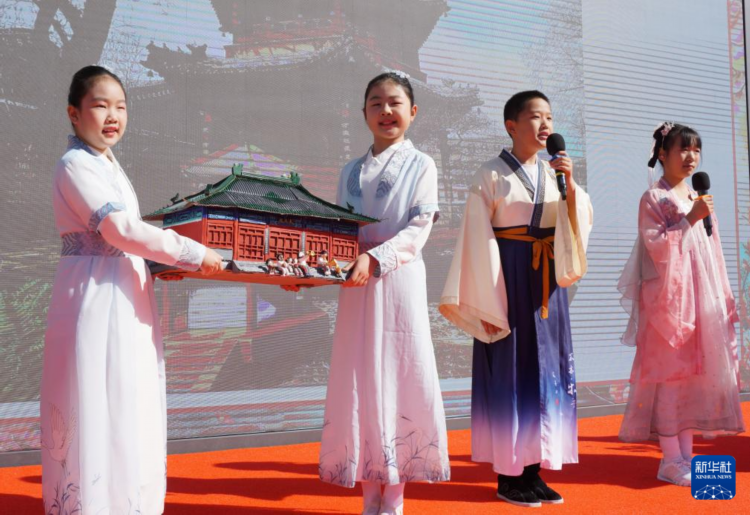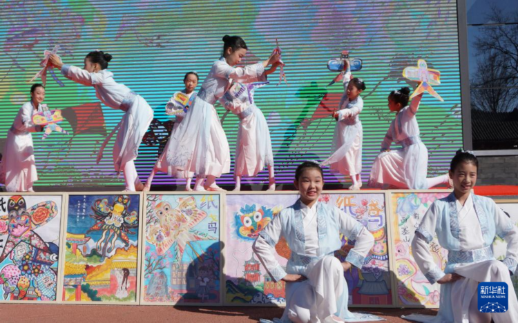 3月24日,府學胡同小學學生在書畫攝影展開幕式上表演歌舞。 當日,北京市東城區府學胡同小學舉行主題為“春日拾光,溫暖學府”的書畫攝影展活動。學生們以筆為羽,以墨為翼,在展現藝術才華的同時,感悟春日的色彩與生機。 新華社記者 胥曉璇 攝