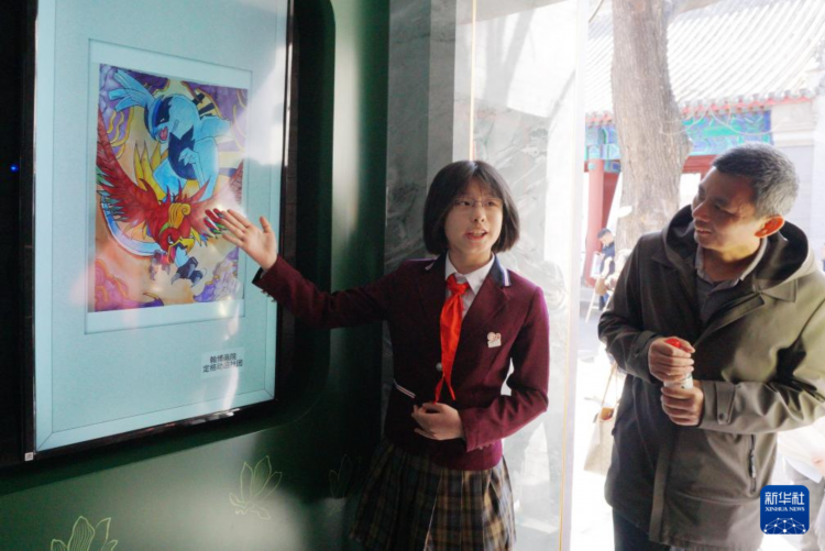3月24日,府學胡同小學學生向來賓介紹學生創作的作品。 當日,北京市東城區府學胡同小學舉行主題為“春日拾光,溫暖學府”的書畫攝影展活動。學生們以筆為羽,以墨為翼,在展現藝術才華的同時,感悟春日的色彩與生機。 新華社記者 胥曉璇 攝