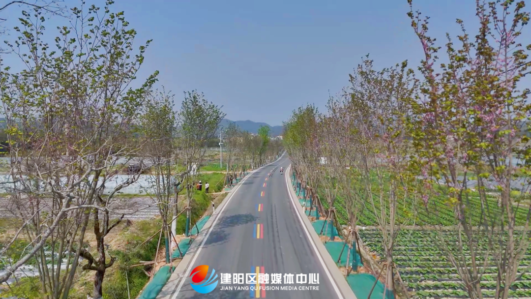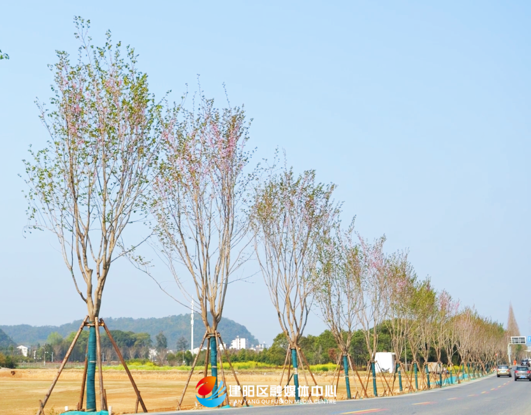 這條“巨紫荊大道”由建陽林業集團東風園林工程有限公司施工建設,團隊針對閩北氣候特點,從河南省許昌市引進生長迅速、抗逆性強的巨紫荊品種,經過本地試種比對后,于2024年12月栽種。除了主打巨紫荊外,沿線還搭配種植櫻花、黃花槐、雞爪槭、櫸樹、梅花等樹種,形成“一路生花”“四季有景”的景觀序列。