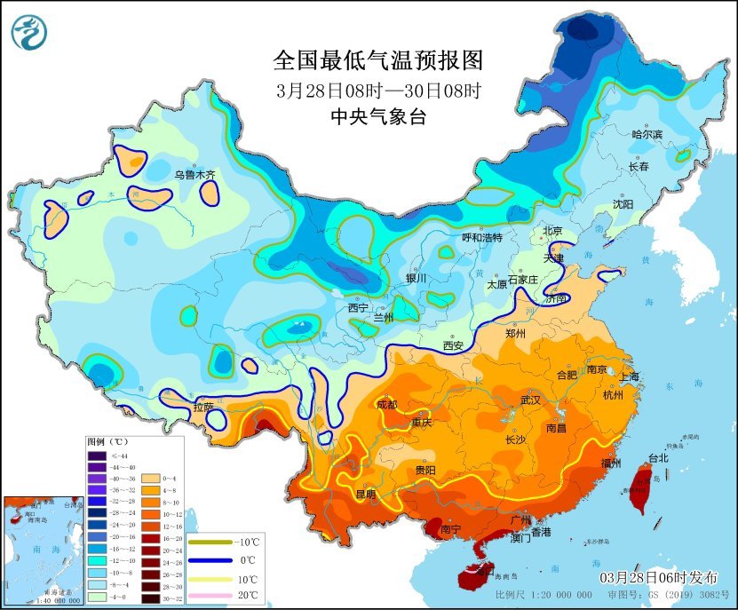 防御指南: 1、中央氣象臺(tái)、中國海上搜救中心提醒受大風(fēng)影響海域航行、作業(yè)的船舶,注意航行安全; 2、森林、草場(chǎng)、城區(qū)防火部門做好防火準(zhǔn)備,機(jī)場(chǎng)、鐵路、公路等交通管理部門應(yīng)采取措施保障交通安全; 3、停止高空、水上戶外作業(yè)和游樂活動(dòng),加固或妥善安置圍板、棚架廣告牌、簡易設(shè)施等易被大風(fēng)吹動(dòng)的搭建物; 4、行人與車輛不要在高大建筑物、廣告牌等臨時(shí)建筑物,或樹的下方停留。 中央氣象臺(tái)3月28日06時(shí)繼續(xù)發(fā)布寒潮藍(lán)色預(yù)警: 受寒潮影響,預(yù)計(jì),3月28日08時(shí)至3月30日08時(shí),新疆南疆盆地西部、西北地區(qū)東部、內(nèi)蒙古東北部、吉林東部、遼寧中南部、華北、黃淮、江淮、江漢、江南、華南大部以及四川東北部、重慶東北部、貴州東部等地將先后降溫8~10℃,其中,華北西部、黃淮、江淮、江漢、江南、華南北部、貴州東部等地部分地區(qū)降溫可達(dá)12~16℃,局地降溫超過18℃。過程最低氣溫將出現(xiàn)在3月29日夜間至30日凌晨,最低溫度0℃線將位于華北南部至秦嶺一帶。