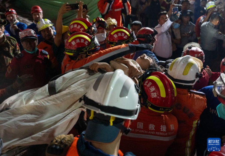 3月31日零時40分,中國救援隊經(jīng)過5個多小時緊張救援,在緬甸曼德勒救出一名女性。新華社記者 才揚 攝 當?shù)貢r間3月28日12時50分許,緬甸發(fā)生7.9級地震。中國救援力量隨即與時間展開賽跑:集結、飛赴、抵進、施援……在曼德勒、在內(nèi)比都、在仰光,都有中方救援隊忙碌奮戰(zhàn)的身影,與之相伴的,還有頻頻傳來的幸存者獲救的消息。