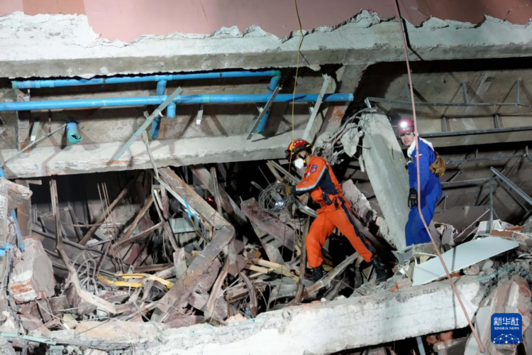 3月30日,在緬甸曼德勒,中國救援隊隊員在長城飯店開展救援。新華社記者 才揚 攝 除了救援“國家隊”,云南和香港等地方救援隊、藍天和公羊等民間救援隊也迅速馳援,以最快速度向震中進發(fā)。 作為第一支抵達緬甸的中方救援隊,云南救援醫(yī)療隊于30日清晨5時左右,便在內(nèi)比都一家醫(yī)院的廢墟中,救出一名被困近40小時的老人。這也是中方救援隊抵達緬甸后救出的第一名幸存者。