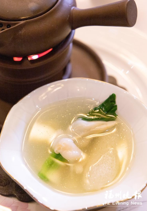 雞湯汆海蚌(資料圖)。葉君浩 攝 節目以福州茉莉花茶拉開美食之旅序幕。當撒貝寧輕啜茶湯,驚訝“聞香不見花”時,鏡頭特別呈現了“茶引花香,花增茶味”的玄妙之處,將福州作為世界茉莉花茶發源地的故事娓娓道來。 面對撒貝寧的疑惑,陳立介紹道:“這是把茉莉花的香味窨到了茶當中。” 撈化與蝦油“靈魂碰撞” 節目中,福州人熟悉的撈化成了一大亮點,撒貝寧捧著一碗撈化感嘆道:“太好吃了!吃著停不下來。” 當撒貝寧打開蝦油調味罐的瞬間,他忍不住驚呼:“這味道太‘上頭’了!” 蝦油以鮮蝦為原料發酵制成,是撈化的“靈魂調料”,無論是將蝦油作為蘸料直接點蘸,還是淋入湯中提鮮,都能瞬間激活撈化的風味層次。 福州魚丸的“指尖藝術” 有人說“沒吃過魚丸就不算來過福州”。在三坊七巷的魚丸店,撒貝寧和王鷗體驗了福州魚丸的制作工藝。王鷗挑戰魚丸捏制“三不”標準——“不偏心、不露餡、不沉底”,卻因手法生疏鬧出笑話,被撒貝寧調侃“這一煮出來,我就能認出是你包的,個大、實惠”。