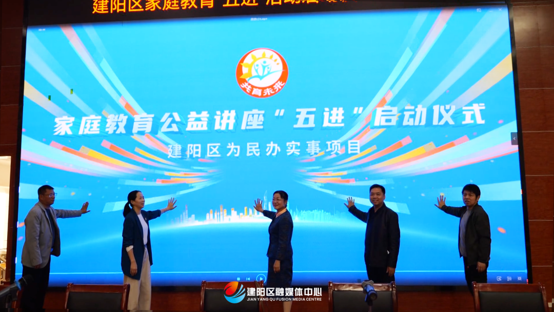 啟動儀式上,與會嘉賓在電子屏幕前共同點亮主題標識,正式啟動我區家庭教育公益講座“五進”活動。今年我區將家庭教育公益講座“五進”活動納入為民辦實事項目,聚焦品德養成、親子溝通、心理健康、行為習慣等廣大家長關切主題,預計將舉辦150場家庭教育公益講座,以推動為國育才的協同合力,推進科學育兒家教理念深入人心。