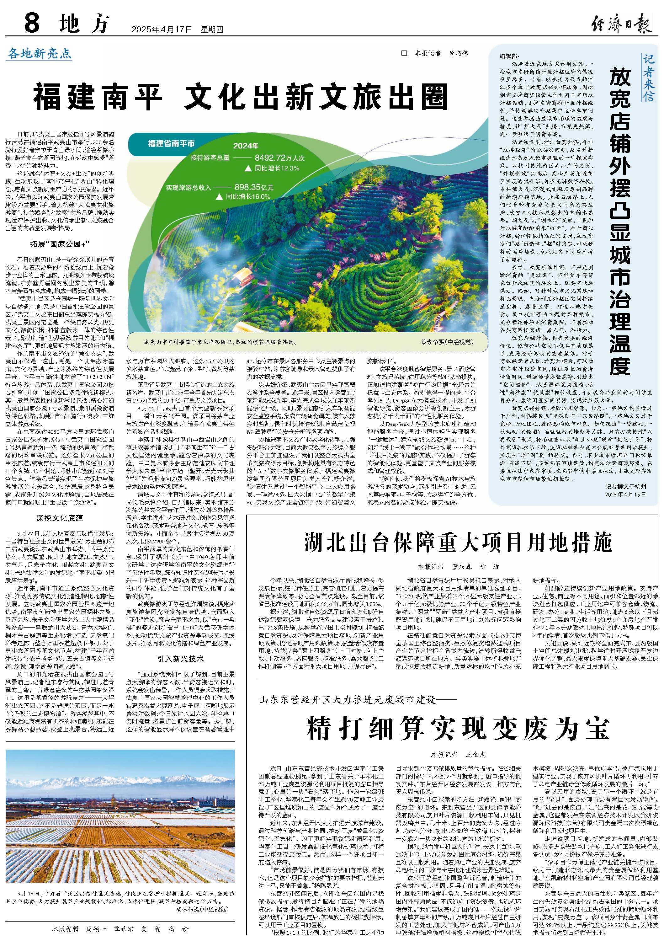 日前,環武夷山國家公園1號風景道騎行活動在福建南平武夷山市舉行,200余名騎行愛好者穿梭于青山綠水間,途經茶旅小鎮、燕子窠生態茶園等地,在運動中感受“茶香山水”的獨特魅力。 這場融合“體育+文旅+生態”的創新實踐,生動展現了南平市深化“兩山”轉化理念、培育文旅新質生產力的積極探索。近年來,南平市以環武夷山國家公園保護發展帶建設為重要抓手,著力構建“大武夷文化旅游圈”,持續擦亮“大武夷”文旅品牌,推動實現遺產保護出彩、文化傳承出新、文旅融合出圈的高質量發展新格局。 拓展“國家公園+” 春日的武夷山,是一幅徐徐展開的丹青長卷。沿著天游峰的石階拾級而上,恍若漫步于立體的山水畫廊。九曲溪如玉帶般蜿蜒流淌,在赤壁丹崖間勾勒出柔美的曲線,碧水與赭石相映成趣,構成一幅流動的畫卷。 “武夷山景區是全國唯一既是世界文化與自然遺產地,又是中國首批國家公園的景區。”武夷山文旅集團副總經理陳實雄介紹,武夷山景區的定位是一個集自然風光、歷史文化、旅游休閑、科普宣教為一體的綜合性景區,聚力打造“世界級旅游目的地”和“福建會客廳”,更好地展現文旅發展的新內涵。 作為南平市文旅經濟的“黃金支點”,武夷山不僅是一座山,更是一個以生態為基底、文化為靈魂、產業為脈絡的綜合性發展平臺。南平市創新性地構建了“1+3+3+N”特色旅游產品體系,以武夷山國家公園為核心引擎,開創了國家公園多元體驗新模式。其中最具代表性的創新舉措包括:精心打造武夷山國家公園1號風景道、崇陽溪漫游道等特色線路,構建“自駕+騎行+徒步”三維立體游覽系統。 在總面積達4252平方公里的環武夷山國家公園保護發展帶中,武夷山國家公園1號風景道猶如一條“流動的風景線”,將散落的明珠串聯成鏈。這條全長251公里的生態廊道,蜿蜒穿行于武夷山市和建陽區的11個鄉鎮、40個村落,巧妙串聯起近60處特色景點。這條風景道實現了生態保護與旅游發展的完美融合,傳統民居變身特色民宿,農家樂升級為文化體驗館,當地居民在家門口就能吃上“生態飯”“旅游飯”。 深挖文化底蘊 3月22日,以“文明互鑒與現代化發展:中國特色社會主義的世界意義”為主題的第二屆武夷論壇在武夷山市舉辦。“南平歷史悠久、人文厚重,閩北大地文源深、文脈廣、文氣足,是朱子文化、閩越文化、武夷茶文化、宋慈法律文化的發源地。”南平市委書記袁超洪表示。 近年來,南平市通過系統整合文化資源,推動優秀傳統文化創造性轉化、創新性發展。立足武夷山國家公園世界雙遺產地優勢,南平市創新推出國家公園探秘之旅、尋茶之旅、朱子文化研學之旅三大主題精品游線路——串聯龍川大峽谷、青龍大瀑布、桐木關古驛道等生態秘境,打造“天然氧吧科考走廊”;整合萬里茶道起點下梅村、燕子窠生態茶園等茶文化節點,構建“千年茶韻體驗帶”;依托考亭書院、五夫古鎮等文化遺存,繪就“理學溯源問道之路”。 周日的陽光灑在武夷山國家公園1號風景道上,記者驅車穿行其間,轉過幾道青翠的山彎,一片綠意盎然的生態茶園豁然眼前。這里是茶香徑的游玩點之一——大坪洲生態茶園,這不是普通的茶園,而是一座“會呼吸的生態博物館”。游客漫步其中,不僅能近距離觀察有機茶的種植奧秘,還能在茶驛站小憩品茗,或登上觀景臺,將遠山近水與萬畝茶園盡收眼底。這條15.5公里的濱水茶香徑,串聯起燕子窠、星村、黃村等茶旅勝地。 茶香徑是武夷山市精心打造的生態文旅新名片。武夷山市2025年全年首先鎖定總投資19.52億元的10個省、市重點文旅項目。 3月31日,武夷山首個大型新茶飲項目——香江云茶興開園。該項目將茶產業與旅游產業深度融合,打造具有武夷山特色的茶旅產品和線路。 坐落于浦城縣夢筆山與西巖山之間的范迪安美術館,選址于“夢筆生花”這一千古文壇佳話的誕生地,蘊含著深厚的文化底蘊。中國美術家協會主席范迪安以南宋理學大家朱熹“半畝方塘一鑒開,天光云影共徘徊”的經典詩句為靈感源泉,巧妙構思出美術館的整體規劃理念。 浦城縣文化體育和旅游局黨組成員、副局長毛靈鋒介紹,自開館以來,美術館充分發揮公共文化平臺作用,通過策劃舉辦精品展覽、學術講座、藝術研討會、創作采風等多元化活動,深度整合地方文化、教育、旅游等優質資源。開館至今已累計接待觀眾50萬人次、團隊2900余個。 南平深厚的文化底蘊和濃郁的書香氣息,吸引了福州長樂一中1040名師生前來研學。“這次研學將南平的文化資源進行了系統性串聯,既有知識性又有趣味性。”長樂一中研學負責人鄭航如表示,這種高品質的研學體驗,讓學生們對傳統文化有了全新的認知。 武夷旅游集團總經理許周妹說,福建武夷旅游集團充分發揮自身優勢,全面融入“環帶”建設,聚合全南平之力,以“全市一盤棋”的姿態創新推出“1+N”大武夷研學體系,推動優質文旅產業資源串珠成鏈、連線成片,推動閩北文化傳播和綠色產業發展。 引入新興技術 “通過系統我們可以了解到,目前主景點天游峰的游客人數,當游客接近飽和時,系統會發出預警,工作人員便會采取措施。”武夷山國家公園智慧管理中心的工作人員官惠秀指著大屏幕說,電子屏上清晰地展示著實時數據:今日累計入園人數、各檢票口實時流量、各景點當前游