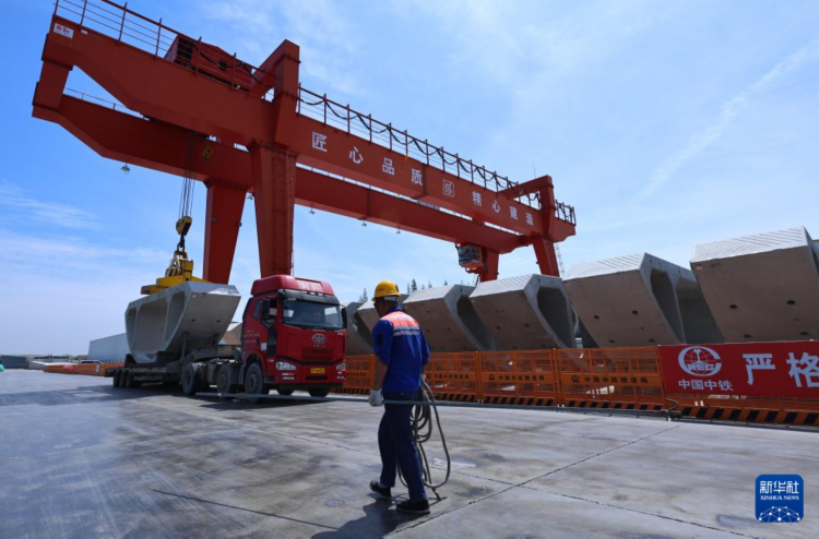 4月16日,工人從隧道弧形件吊裝現場走過。 新華社記者 方喆 攝 |