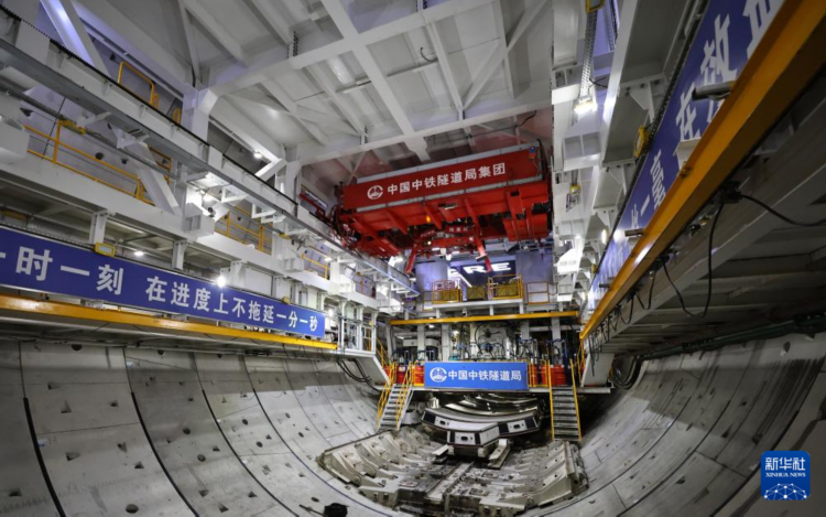 這是4月16日拍攝的“領航號”盾構機內的管片輸送軌道(下)。 新華社記者 方喆 攝