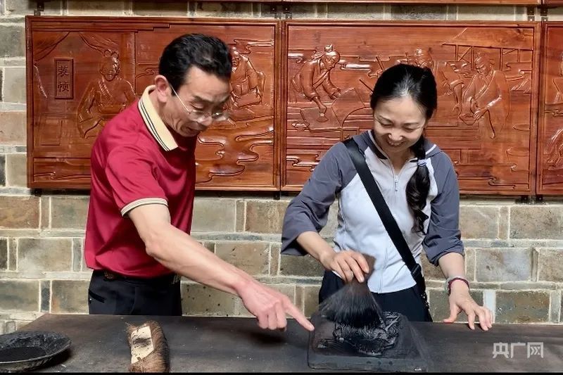 雕刻好的建本(央廣網記者 羅曉英 攝) “圖文并茂是建本最基本的特征,歷代建本還有一個重要特點,就是在正文中加插圖,主要特征是上圖下文,以圖輔文。”南平市級建本雕版印刷技藝代表性傳承人黃行忠向記者介紹道:“這種獨特的排版方式,不僅讓書籍更加生動有趣,也展現了建本匠人們高超的藝術造詣。” 建本印刷所使用的松煙墨,更是書坊鄉的一大特色。這里森林茂密,松樹資源豐富,為松煙墨的制作提供了優質原料。“松煙墨色澤黑亮、質地細膩,適合用于建本印刷,印出的文字清晰醒目,歷經歲月也不易褪色。而雕版木材則多取材于書坊山野間生長的野梨木,其木質纖維細膩、硬度適中、柔韌性好,是刻印的絕佳材料。”黃行忠如是說。