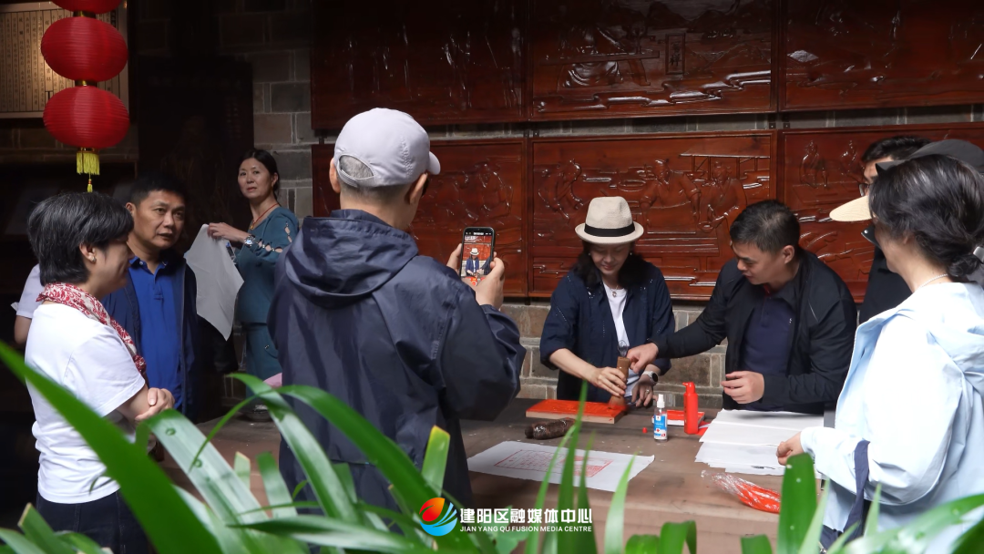 在書坊鄉康寧古街,采風團成員穿梭于青石板路與古色古香的建筑間,沉浸式感受建陽深厚的文化底蘊。古樸的建本雕版、泛黃的小人書……大家在古街上非遺傳承人的刀鋒流轉間喚醒墨香記憶。