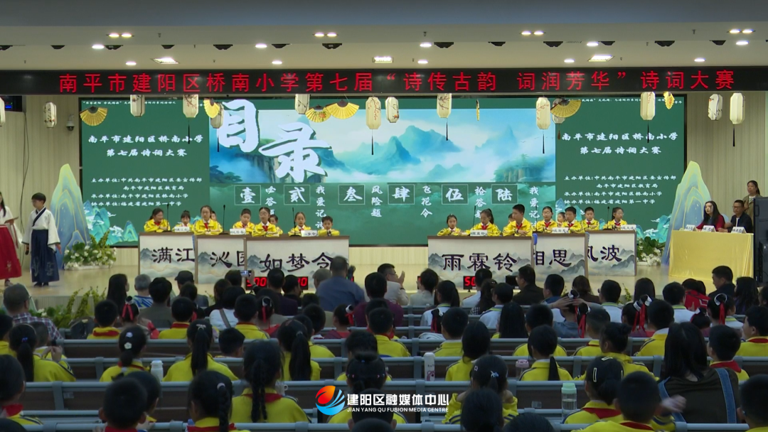 4月25日,由建陽區委宣傳部、區教育局主辦,橋南小學承辦、建陽第一中學協辦的“書香建陽”系列之與詩同行活動——“詩傳古韻 詞潤芳華”第七屆詩詞大賽總決賽在建陽一中報告廳舉行。