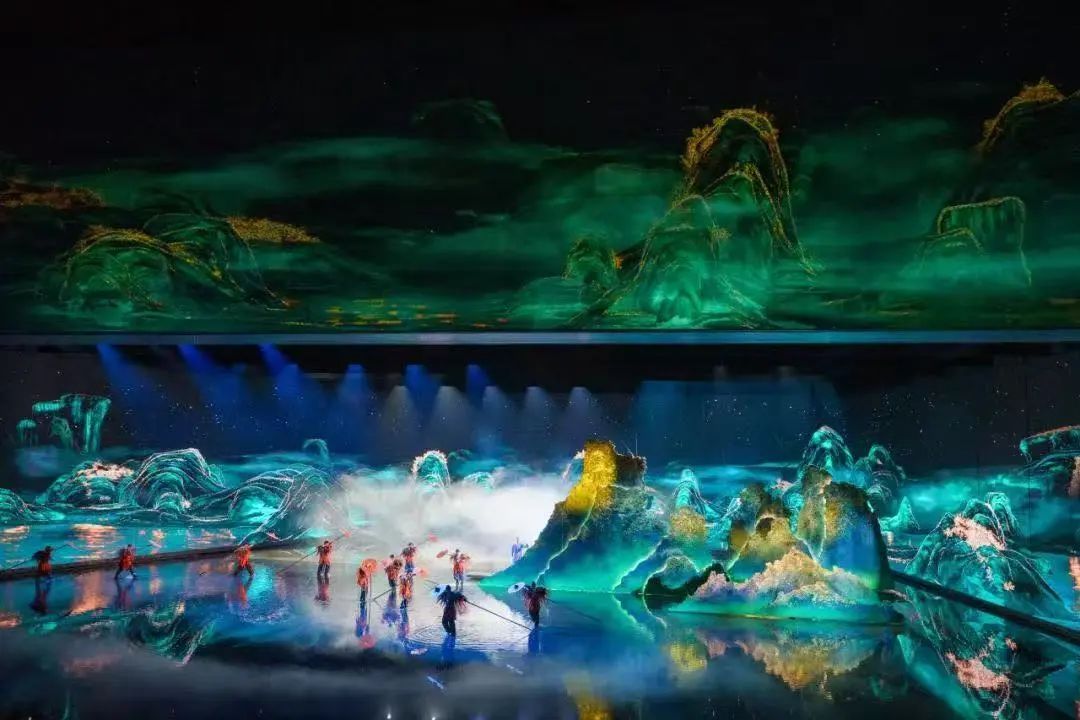 斬斷時光的羈絆 非遺技藝不再是靜止的展示, 而是活生生的文化脈動 水幕上, 激光刻寫的《九曲棹歌》隨波逐流 詩句在光影中重組, 如同朱熹的思想在歲月里回響