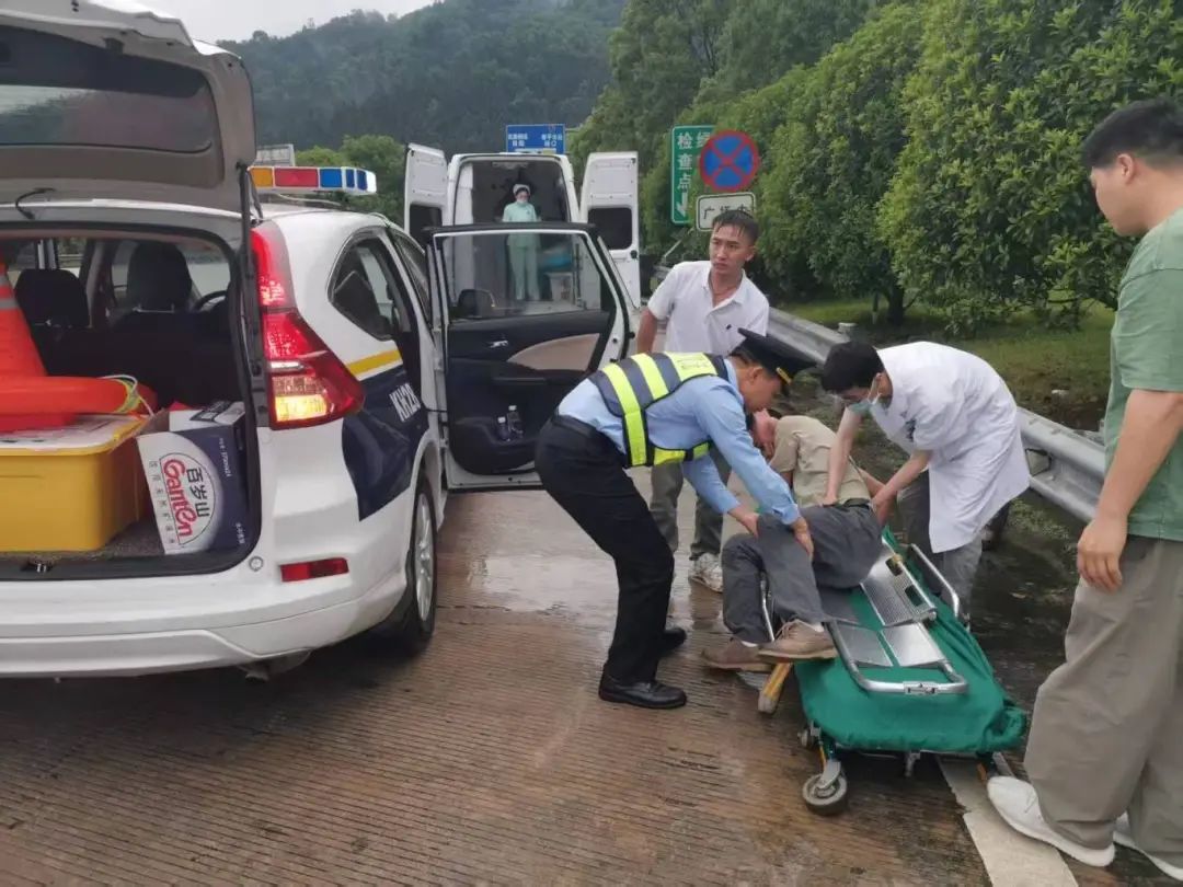 接到事故報警后,南平高速執法支隊四大隊聯合高速交警等部門迅速響應,組織執法人員火速趕赴現場。抵達現場后,執法人員發現事故現場一片狼藉,車輛碎片散落一地,車上傷者出現肢體骨折、腰部疼痛等癥狀。執法人員第一時間在事故現場周圍設置警示標志,擺放反光錐桶,提醒過往車輛減速慢行,避免發生二次事故。同時立即撥打了120急救電話,由于事發地距離最近醫院較遠,救護車抵達時間較長??紤]到傷員傷勢不輕,經與醫護人員電話溝通評估及征得傷者自己同意,執法人員果斷決定啟用執法車輛,將傷員緊急送往最近的將口高速收費站出口后,順利將傷員移交給120急救人員,為傷員后續救治爭取了黃金時間。
