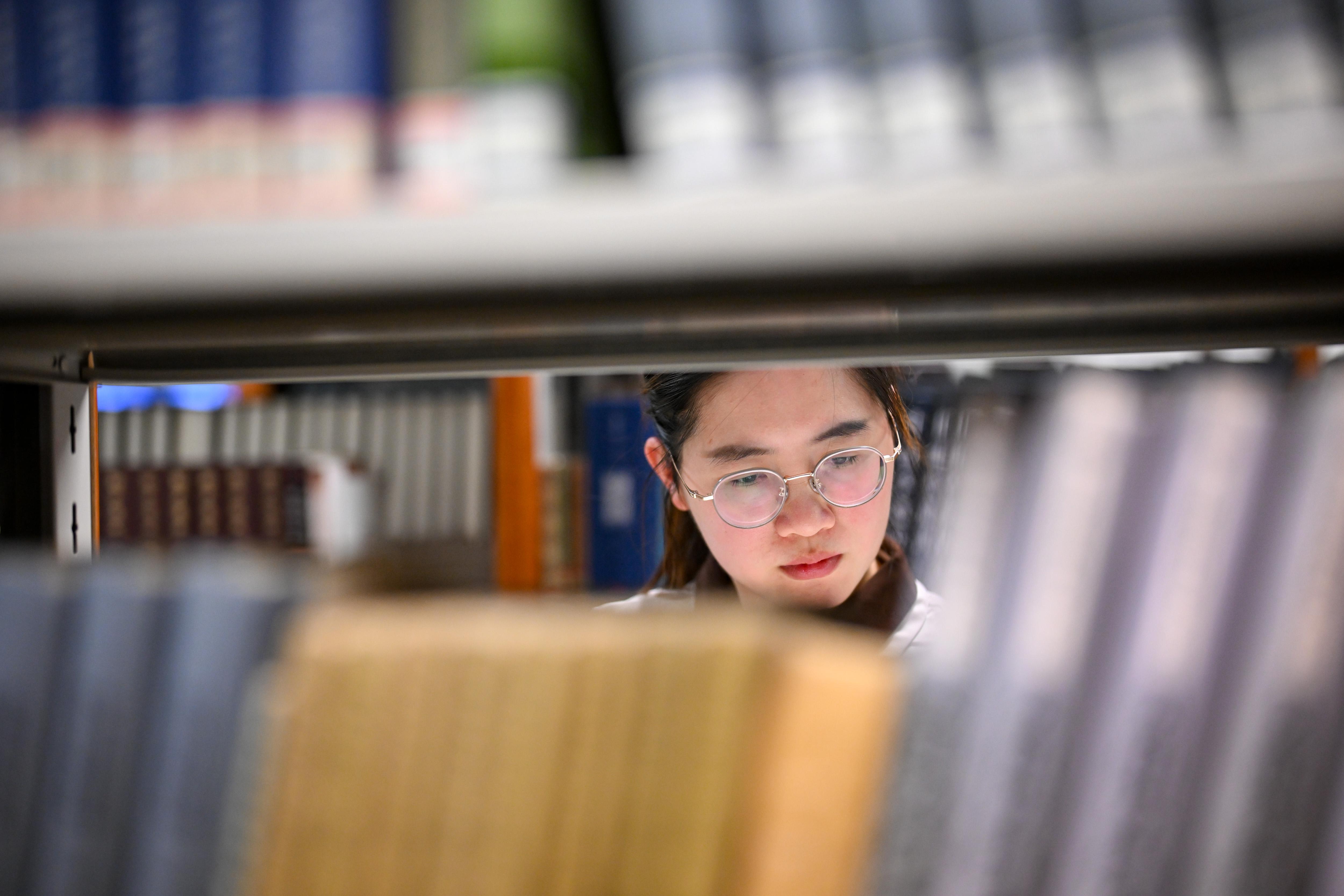 5月7日,在南開大學(xué)津南校區(qū),楊雅麗在歷史學(xué)院采薇閣(資料室)查閱資料。 1996年出生的楊雅麗是南開大學(xué)歷史學(xué)院的在讀博士生,她從2018年開始著力研究抗日戰(zhàn)爭(zhēng)史,聚焦南京安全區(qū)、抗戰(zhàn)時(shí)期平津市民的日常生活等內(nèi)容。
