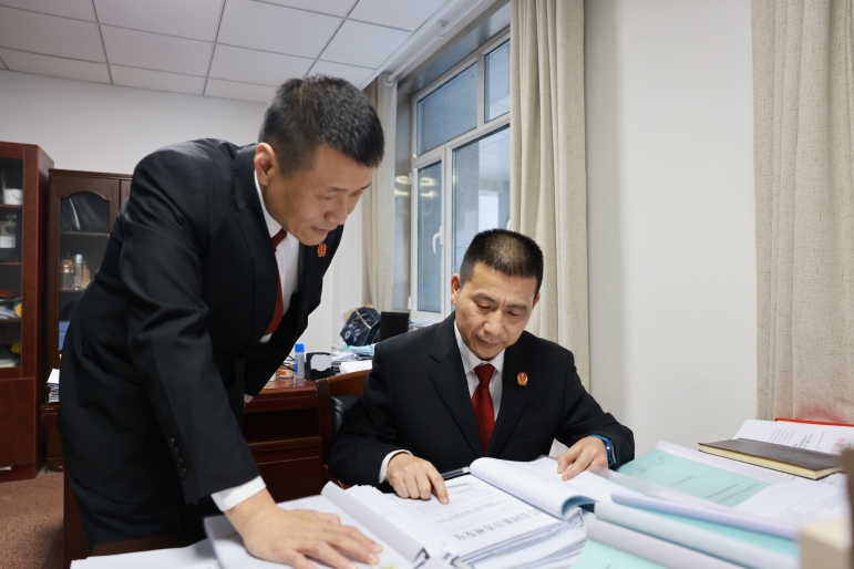 福建法院援疆干部陳小鴻(右)與分管部門同志處理舉報案件。 打造“組團”式援疆的模式 時間撥回2024年3月,帶著福建高院黨組囑托,福建法院援疆工作隊的8名同志踏上了援疆征程。昌吉,這片天山北麓的美麗土地,首次迎來了福建法院一年期的援疆隊伍。 初抵昌吉,“新疆需要什么樣的法治支援?”“我能干什么,我們能干什么,我們應該怎么干?”援疆之問時刻縈繞在每名援疆干部心頭。帶著問題與思考,援疆法官們在昌吉州7縣市法院,到立案窗口,到一線法庭,到辦案現場,深入調研了解。在距縣城130公里的五彩灣法庭,準東經濟區蓬勃發展下對高效解紛的迫切需求顯露無遺;在奇臺縣法院,年輕法官面對制種企業破產案件的復雜困局一籌莫展。大家想到了,法治支援如同滴灌農業,唯有精準施策,方能滋養土地。
