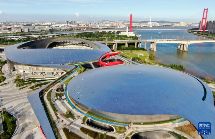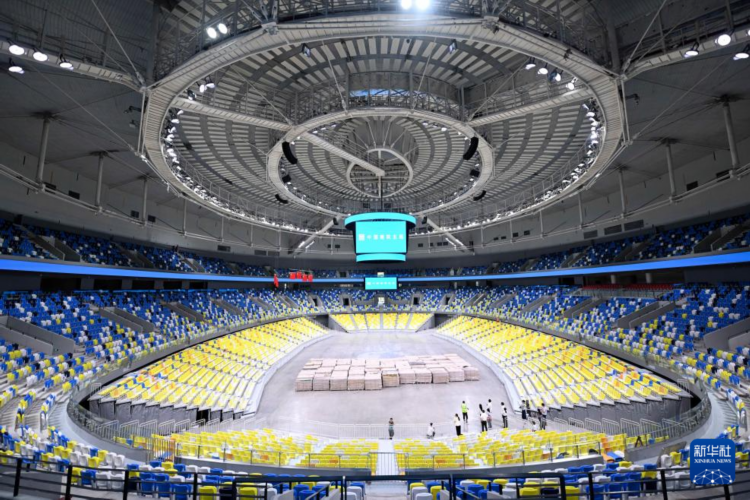 這是5月15日拍攝的德勝體育中心綜合體育館。 近日,作為第十五屆全運會佛山賽區場館之一的廣東省佛山市順德區德勝體育中心全面完工。該中心包括綜合體育館、游泳館、綜合體育場和相關配套設施,預計將于6月中旬全面移交并投入使用。 新華社記者 鄧華 攝