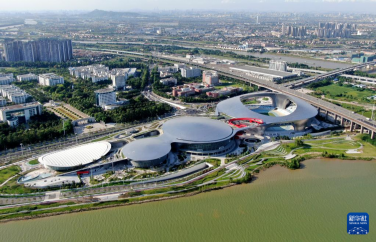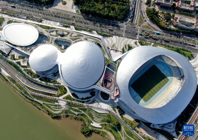 這是5月15日拍攝的德勝體育中心綜合體育館和綜合體育場(無人機照片)。 近日,作為第十五屆全運會佛山賽區場館之一的廣東省佛山市順德區德勝體育中心全面完工。該中心包括綜合體育館、游泳館、綜合體育場和相關配套設施,預計將于6月中旬全面移交并投入使用。 新華社記者 鄧華 攝