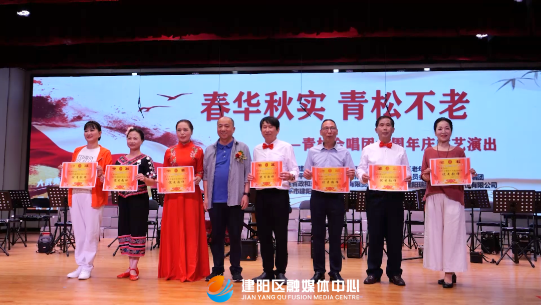 5月16日,青松合唱團“春華秋實 青松不老”二十周年慶文藝演出在建陽區老年大學舉行。區政協主席方丹青、區委常委鄭林山、區人大常委會副主任李家回,有關部門負責同志、企業家代表等出席活動。