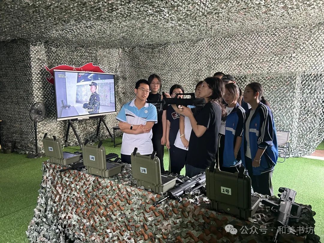 實操軍事體驗,強化紀律擔當 隨后,師生們前往福建省國防教育基地(體驗中心)開展國防教育實踐體驗。在專業人員的指導下,學生們系統學習了國防知識、槍械原理和射擊要領。讓學生們直觀感受軍事訓練的專業性與嚴肅性,切實增強了國防意識與紀律觀念,深刻體會到新時代國防建設的重要意義。
