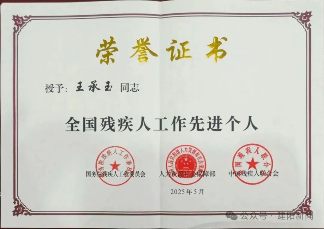 “傅大哥,您符合創業就業扶持政策,這些是需要準備的材料……”5月22日,在建陽區童游街道水尾村,剛榮獲“全國殘疾人工作先進個人”稱號的王承玉,又一次將服務送進了殘疾人的家門。 身殘志堅淬硬功:把政策“嚼碎”送到群眾心坎里 1990年出生的王承玉,因腦癱后遺癥導致肢體障礙?,F為建陽區政務服務中心殘聯窗口工作人員兼童游街道殘疾人聯絡員。2015年成為童游街道殘疾人聯絡員以來,她深知“做好助殘工作需要專業支撐”。為此,她開啟“白天工作、夜晚充電”模式,通過函授取得大專學歷,系統學習《中華人民共和國殘疾人保障法》等政策法規。