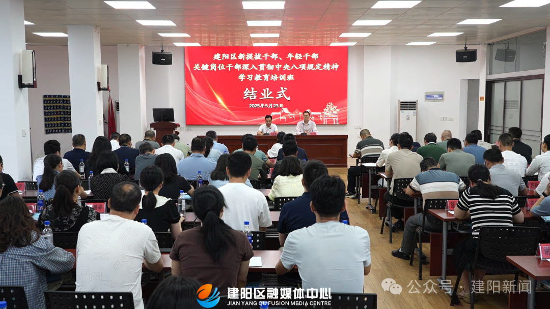 5月22日-23日,建陽區舉辦新提拔干部、年輕干部、關鍵崗位干部深入貫徹中央八項規定精神學習教育培訓班。區委常委、組織部部長范沛華出席結業式并講話。