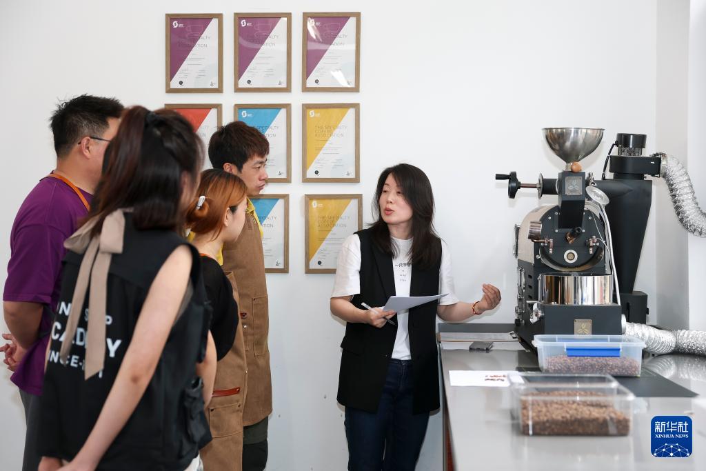在一尺見學咖啡培訓學校,咖啡烘焙師蔡曉麗為學員講解咖啡烘焙技巧(5月22日攝)。 上海是全國咖啡門店數量最多的城市,咖啡文化早已融入這座城市的肌理。從繁華的市中心商圈到寧靜的鄉村,咖啡店的業態融合正成為一種新趨勢。其中,“咖啡+自然+文化”的創新模式,成為眾多上海咖啡門店的選擇,為文旅消費注入了強勁的新動力。 新華社記者 王翔 攝