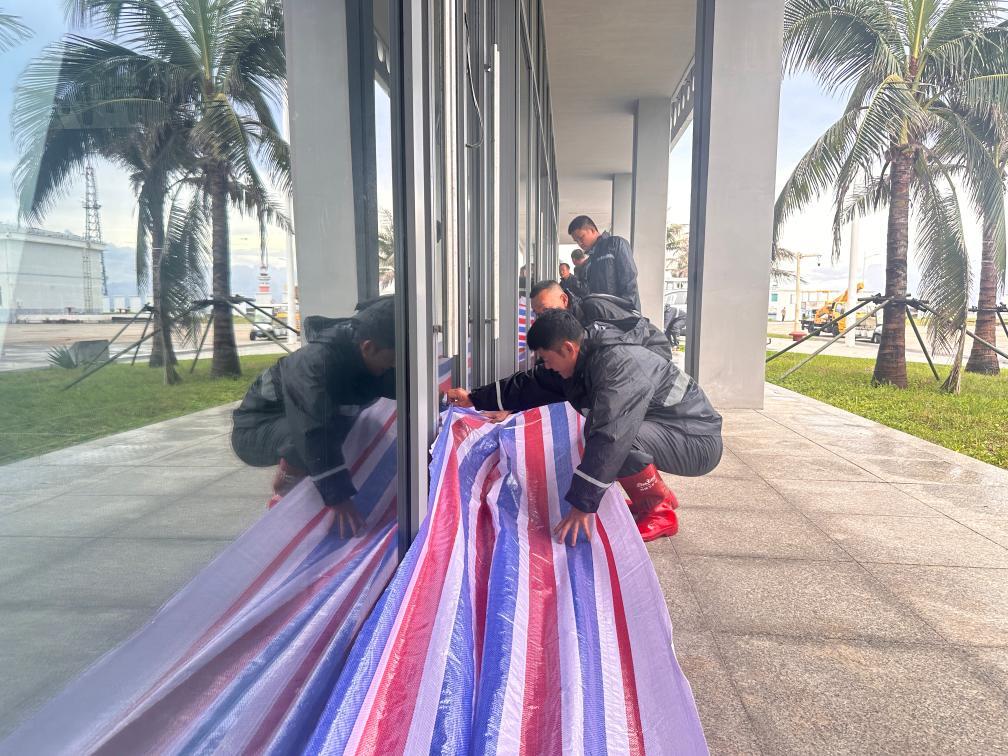 6月11日,三沙市工作人員正在對文體館進行防風防汛處理。(三沙市新聞中心供圖) 記者從三沙市應(yīng)急指揮部了解到,目前三沙各島礁已全面進入應(yīng)急值守狀態(tài),重點對島礁房屋、海上交通等重點領(lǐng)域進行隱患排查,并做好了人員轉(zhuǎn)移安置準備工作,配備了救援類、防護類等四大類保障物資;氣象、海事等部門24小時值班值守,實時監(jiān)測臺風動態(tài)。 記者從三沙市西沙區(qū)政府了解到,11日白天,各島礁工作人員已為永興島等多個島礁道路的樹木綁扎防風支架進行加固,重點清理樓頂平臺堆積物,全面加固空調(diào)外機等外掛設(shè)備。目前三沙市各島礁已完成防臺物資盤點工作,并啟動24小時值班制度,以及時響應(yīng)突發(fā)情況。永興島文體館等轉(zhuǎn)移安置點布置及基礎(chǔ)生活物資已經(jīng)全部準備就緒。 海口海事局介紹,瓊州海峽客滾船將于12日11時起停運。為保障鮮活農(nóng)產(chǎn)品運輸車盡快順暢過海,海口市新海港、秀英港已特設(shè)荔枝等鮮活農(nóng)產(chǎn)品車輛專屬通道。三亞海事局介紹,目前三亞轄區(qū)所有貨船碼頭均已停止作業(yè),水上工程項目均已停工,陸續(xù)轉(zhuǎn)移11座海上平臺共1205名人員,83艘長期停航船舶和5艘扣押船已在指定水域做好防風措施。(記者夏天) |