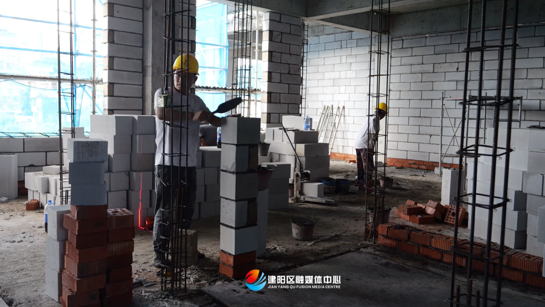 6月12日,記者在水東幼兒園教學綜合樓(二)項目現場看到,項目主體已經封頂,工人師傅正在室內忙著砌筑墻體。據代建單位——建陽區水東新城開發建設有限公司相關負責人介紹,墻體砌筑從5月初開始,目前已完成工程量的90%。