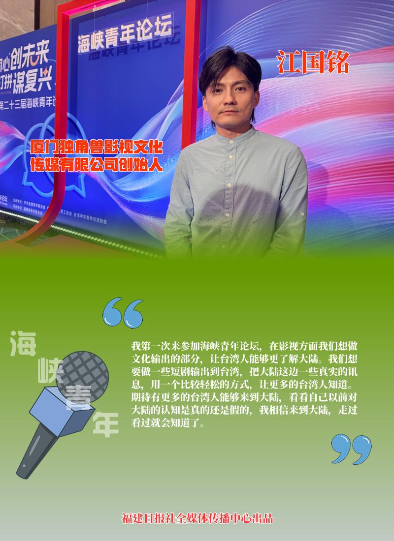 “海天相連鼓浪情,峽灣串起兩岸心,論劍煮酒青年夢(mèng),壇席之間皆英雄”。任奕勛說(shuō),若能結(jié)合兩岸在平臺(tái)制作、創(chuàng)意與市場(chǎng)上的優(yōu)勢(shì),相信我們可以攜手打造更多優(yōu)質(zhì)的內(nèi)容,讓海內(nèi)外同胞都能感受到我們文化的深度和魅力。