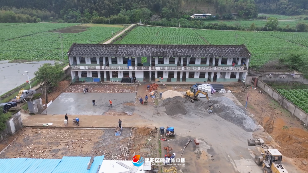 在后畬村閩臺鄉建鄉創樣板村項目施工現場,連日來,施工班組搶抓晴好天氣,對閑置的小學操場進行穩定層鋪設作業,原教學樓內部改造也在同步進行中。這里將被打造為鄉建鄉創中心,設有蓮心咖啡廳、蓮子加工展示空間、研學教室、研學宿舍等。