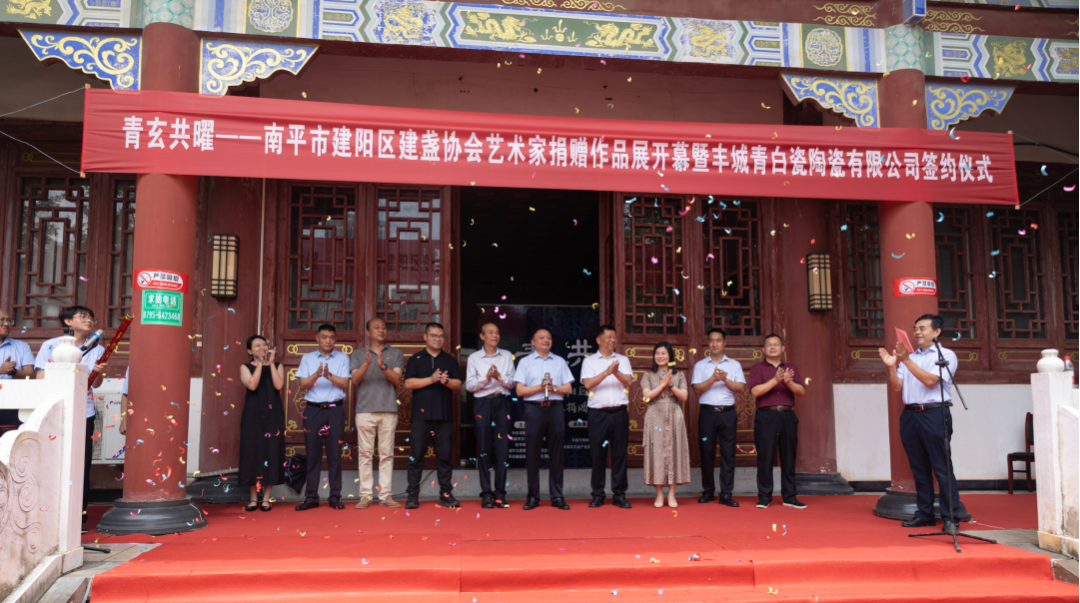 6月18日,青玄共曜——南平市建陽區(qū)建盞協(xié)會(huì)藝術(shù)家捐贈(zèng)作品展在江西省豐城市開幕。豐城市委常委、宣傳部部長陳曉建,副市長況鳳娟,建陽區(qū)政協(xié)黨組成員、二級調(diào)研員沈嘉榮等領(lǐng)導(dǎo)出席儀式并致辭。