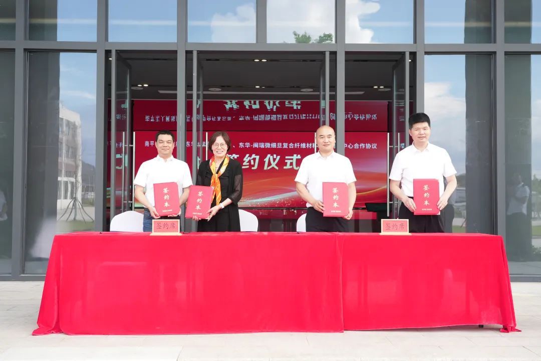 6月23日下午,東華——閩瑞微細旦復合纖維材料聯合創新中心簽約儀式在建陽經開區舉行。東華大學副校長陸衛兵,中國科學院院士、東華大學教授朱美芳,市委常委、常務副市長張朝陽,區委書記謝啟龍,東華大學相關領導與教授,區領導范沛華、鄭穎培,市、區兩級有關部門負責同志,閩瑞新合纖公司董事長陳興華出席,儀式由區委副書記、區長王沖主持。 朱美芳教授表示,南平市營商環境良好,配套設施完善,產業基礎扎實,科技創新活力強勁,近年來在推動新型輕紡產業發展上成效顯著。東華大學的科學研究領域與南平市產業需求、人才需求和技術需求具有很好的契合度,雙方合作空間廣闊、前景光明。希望以此次簽約為契機,在做實做優現有合作基礎上,深化人才資源供給、科技成果轉化、產業轉型升級等領域的合作,進一步發揮科研團隊所長,聚焦關鍵技術攻關,實現纖維材料向功能化、智能化升級,共同推動南平市新型輕紡產業高質量發展,實現校地優勢互補、互利共贏。 張朝陽表示,近年來,南平市牢記囑托、感恩奮進,堅持把發展以新型輕紡產業為代表的縣域重點產業鏈作為加快構建現代化產業體系的重要著力點。東華大學被譽為“中國紡織人才的搖籃”,在纖維材料改性等領域研究代表國際先進水平,與南平新型輕紡產業發展需求高度契合。希望以此次簽約為新起點,依托東華大學科研團隊的雄厚實力,進一步拓展合作廣度和深度,加快導入更多創新資源、突破更多“卡脖子”技術、孵化更多尖端項目,為南平綠色高質量發展提供強勁支撐。 簽約儀式上,陸衛兵、朱美芳、張朝陽、陳興華簽訂了南平市人民政府與東華大學合作備忘錄、東華——閩瑞微細旦復合纖維材料聯合創新中心合作協議。
