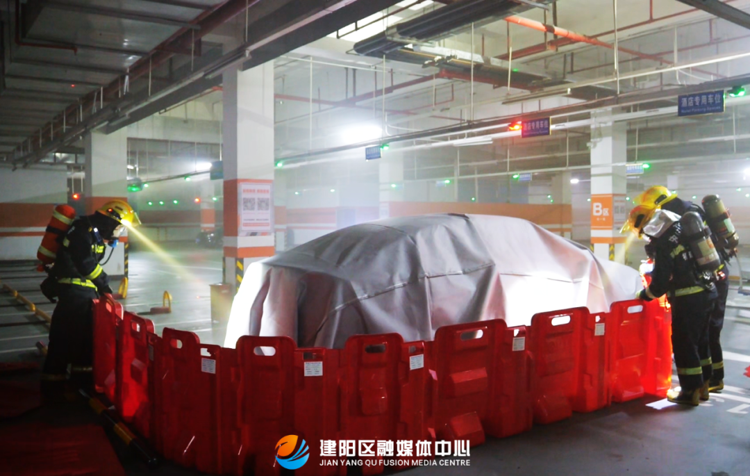 整個演練過程嚴格按照作戰方案和操作規程執行任務,充分展示了隊伍在應對大型商業綜合體新能源汽車火災事故時的快速反應能力、科學處置能力和協同作戰能力。經過近一個小時的緊張戰斗,“大火”被成功撲滅,“被困人員”全部安全獲救,演練任務圓滿完成。