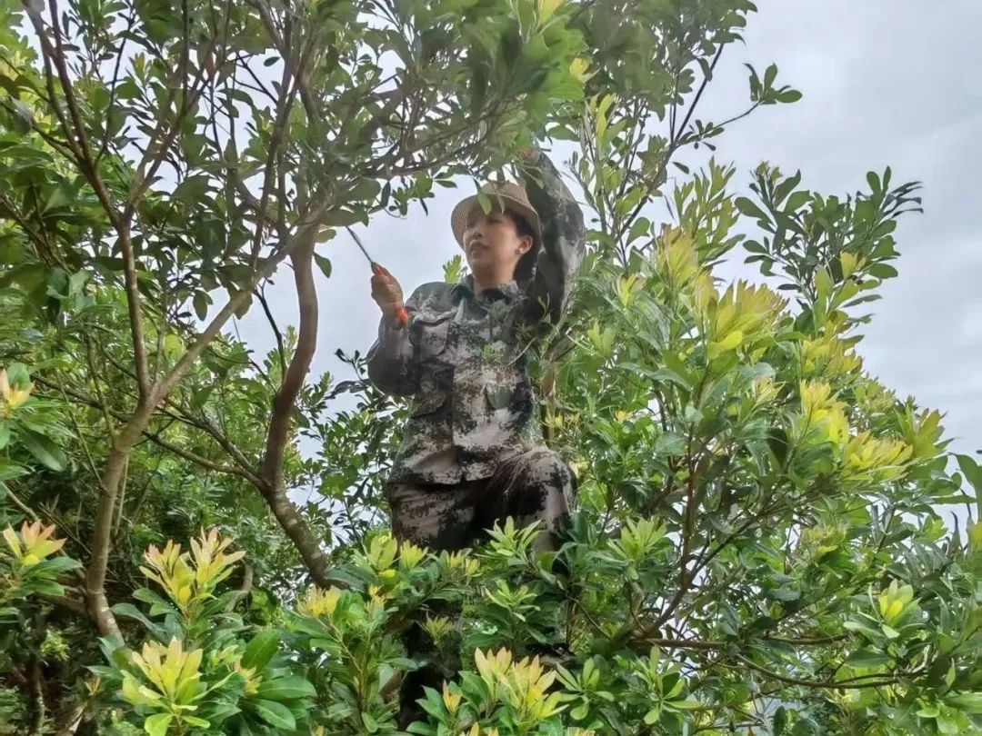 圖為馬坑村婦聯主席黃小娟修剪楊梅樹 小湖鎮婦聯計劃組織培訓,教姐妹們怎么拍短視頻、怎么直播帶貨。沈丹就是最好的榜樣,小湖鎮的婦女也能學她,把手機變成“新農具”,讓直播變成“新農活”。村里有了自己的“女主播”,楊梅自然就不愁銷路。 在首屆小湖楊梅嘉年華活動上,小湖鎮馬坑村婦聯主席黃小娟家里種植的楊梅榮獲“楊梅王”稱號。“沈丹視頻的火爆給我們很大鼓舞,我們要抓住互聯網機遇,把家鄉的好楊梅推廣出去。”黃小娟激動地表示。這份榮譽不僅是對她個人種植技術的肯定,更激勵著她帶領更多姐妹共同發展楊梅產業。