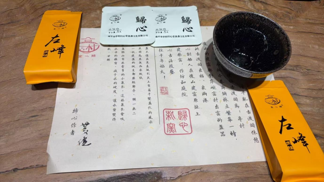 茶盞融合 構建產業發展新格局 在歸心堂的產業藍圖中,茶與盞并非孤立存在,而是以 “共生共榮” 的姿態,構建起極具特色的產業發展生態。黃健深刻認識到,建陽小白茶與水仙茶的醇厚茶香,需要建盞的古樸器型來承載與升華;而建盞獨特的藝術魅力,又能借由茶文化的底蘊賦予更深層次的內涵,二者融合既是對傳統的傳承,更是對產業發展的創新探索。 走進歸心堂的茶莊園,處處可見茶盞融合的生動實踐。游客踏入茶園,不僅能體驗親手采摘鮮嫩茶葉的樂趣,還可在專業茶藝師的指導下,使用建盞沖泡新制的茶葉,感受茶湯與盞色相互映襯的美妙。建盞黑釉表面的獨特斑紋,在茶湯的浸潤下愈發靈動,茶湯的色澤與口感也因建盞的獨特材質而別具風味。這種沉浸式的體驗,讓游客直觀感受到茶與盞融合的獨特魅力,成為吸引游客的一大亮點。 在生產環節,歸心堂更是將茶盞融合發揮到極致。公司依據不同茶葉的特性,設計燒制與之適配的建盞器型與釉色。例如,為展現小白茶淡雅清甜的特質,推出釉色溫潤、器型簡約的建盞;針對水仙茶醇厚濃郁的口感,打造釉面深沉、線條古樸的茶器。同時,在產品包裝與營銷上,將茶與盞進行組合銷售,推出 “茶盞套裝”,以精美的禮盒形式呈現,既滿足消費者對高品質茶器的需求,又提升了產品的附加值與文化內涵。 此外,歸心堂構建的動態研學實踐基地,成為茶盞融合的重要平臺。學員們在這里不僅能學習茶葉種植、加工的專業知識,還可系統了解建盞的歷史文化、燒制技藝。在實踐課程中,學員們親手采摘茶葉、制作茶餅,再運用所學的建盞制作工藝,設計燒制專屬的茶盞,將自己采摘的茶葉與親手制作的茶盞相結合,深刻體會茶盞融合背后的文化價值與產業邏輯。這種寓教于樂的方式,既傳承了非遺技藝,又培養了學員對傳統文化的熱愛,為茶盞產業的發展注入新生力量。