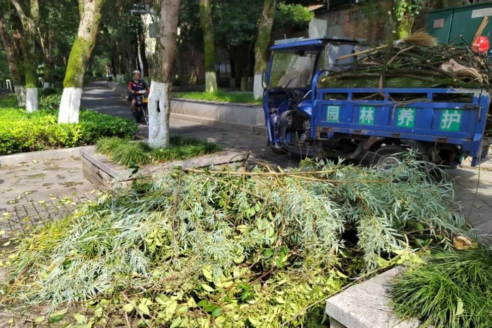 清障現(xiàn)場 建陽區(qū)城管局迅速啟動應(yīng)急搶險預(yù)案,園林服務(wù)中心與環(huán)境衛(wèi)生服務(wù)中心組建聯(lián)合搶險救援隊伍,調(diào)配油鋸、繩索、運(yùn)輸車輛等專業(yè)設(shè)備,第一時間趕赴現(xiàn)場,在確保安全的條件下開展清理作業(yè)。