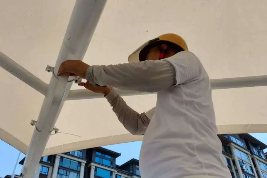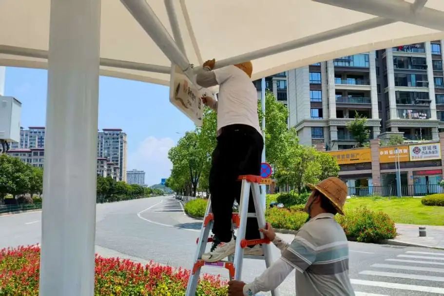 為保障市民安全出行,市政服務(wù)中心第一時間對西區(qū)生態(tài)城8個交通路口設(shè)置的28頂遮陽傘,開展全面“體檢”。
