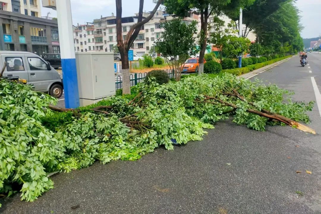 受極端天氣影響,倒伏、斷枝的樹木 7月8日下午,受臺風(fēng)環(huán)流影響,建平大道、民主南路、考亭路、嘉禾路等主次干道道路兩側(cè)有多棵樹木被狂風(fēng)連根拔起或攔腰折斷。這些倒伏的樹木不僅阻塞了交通,還對過往行人和車輛的安全,構(gòu)成了嚴(yán)重威脅,清障保暢,刻不容緩。