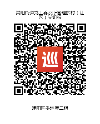 區委巡察二組 被巡察單位:崇陽街道 組 長:羅衛國 副組長:陳 蕾 聯系電話:17759951338(8:00-18:00) 郵政信箱:福建省南平市A019號郵政信箱; 舉報信箱:南平市建陽區林后大街565號崇陽街道辦事處門口左側; 舉報二維碼: