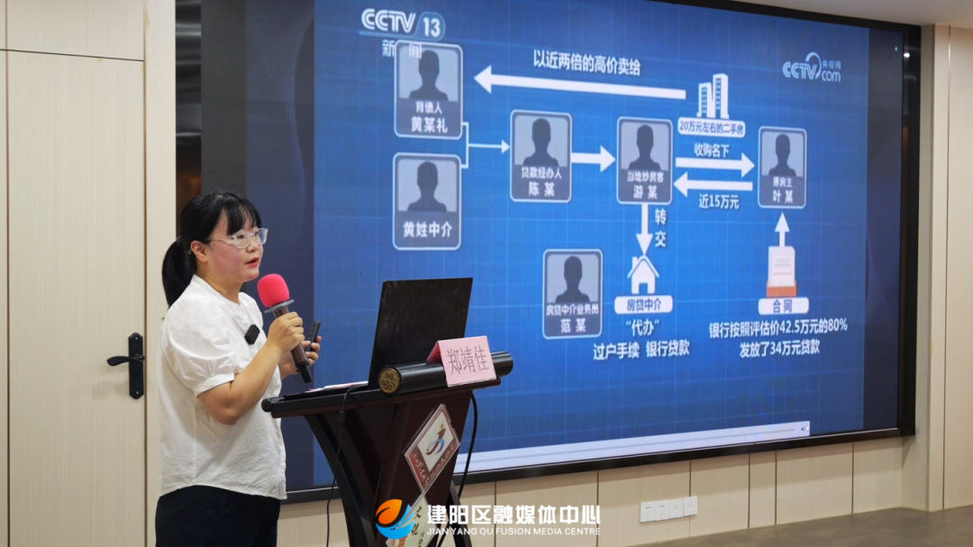 宣講活動上,建陽區農村信用合作聯社合規與風險管理部副總經理鄭靖佳以《揭穿“職業背債人”騙局,守護您的“錢袋子”》為題,通過典型案例展開深入剖析,揭示了不法分子如何利用虛假身份、誘導“背債”協議等手段實施金融詐騙,并就如何識別非法金融活動、保護個人信息及合法財產權益提供了實用建議,引導社會公眾全面深入學習了解“職業背債人”的危害,進而提醒廣大群眾提高風險意識、珍惜個人信用、審慎對待“代辦”業務、遇到可疑情況及時求助舉報。