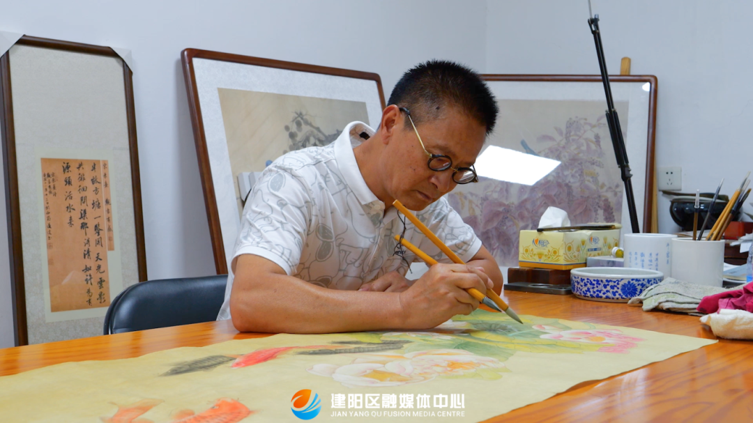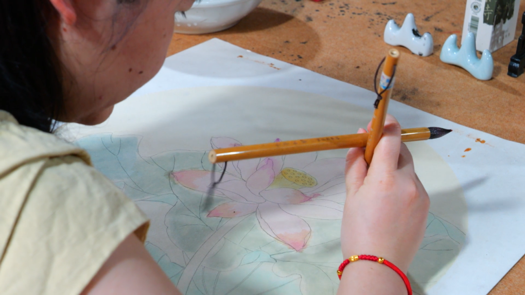 文化特派員劉德書:“蓮‘出淤泥而不染,濯清漣而不妖’,它體現(xiàn)的是高潔,跟我們的廉政文化剛好吻合。今天,大家在這里感受周敦頤的愛蓮文化,讓他們深入到其中,感受蓮文化,畫蓮,與廉政文化相融合一。” 劉德書現(xiàn)任崇雒鄉(xiāng)黨群服務中心副主任,在基層文化站工作了30多年,致力于宋慈法治文化研究和工筆畫創(chuàng)作。作為土生土長的崇雒人,劉德書一直在關注后畬這座古村落的發(fā)展變化。后畬村現(xiàn)存72棟明清時期的古建筑,是理學鼻祖周敦頤后人聚居地,理學氛圍濃厚。后畬村以“黨建體檢”找準發(fā)展痛點、引入閩臺團隊“陪護式”服務,打造閩臺鄉(xiāng)建鄉(xiāng)創(chuàng)樣板村,積極探索傳統(tǒng)村落保護和活化利用。