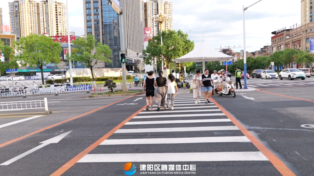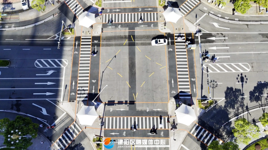 南平市公安局交通管理支隊建陽大隊城區中隊指導員宋典進:“4個安全島的位置增設了兩輪車的等候區,對人行橫道進行優化設計,使行人和兩輪車分流,對路口的紅綠燈配時進行優化,實行逆時針綠波通行。” 據了解,該路口作為西區核心樞紐,毗鄰外國語學校、實驗小學等教育機構及商業區,日常通勤與接送學生車流疊加,混行沖突頻發。為消除安全隱患,在南平市公安局的統一部署和交警支隊的專業指導下,區有關部門通過開展實地勘測與數據建模,精準制定“空間隔離+信號協同”改造方案,緊抓時間節點對路口實施改造。