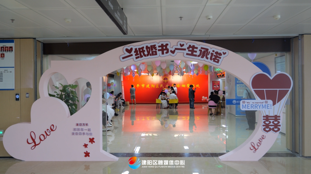 建陽區婚姻登記中心工作人員程玉艷:“粉色代表爛漫,所以我們用粉色作為基底色,讓每對進來的新人感覺很喜慶很溫馨。” 建陽區婚姻登記中心不久前遷址到南平市政務服務中心三樓,新址以“浪漫溫馨、便捷高效”為核心定位,從環境設計到服務功能全面升級,為即將步入婚姻殿堂的新人打造了一處充滿儀式感的幸福打卡地,讓每一對新人在這里開啟人生新篇章時,都能收獲滿滿的甜蜜與美好。