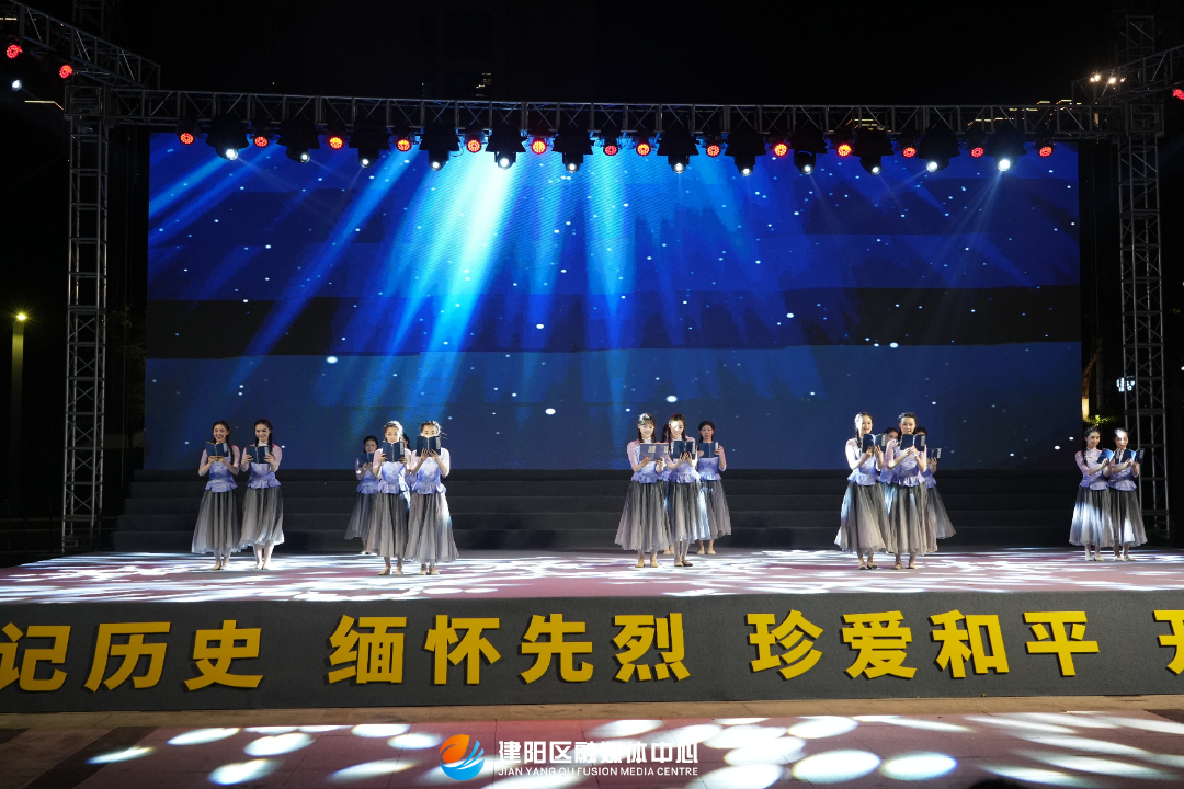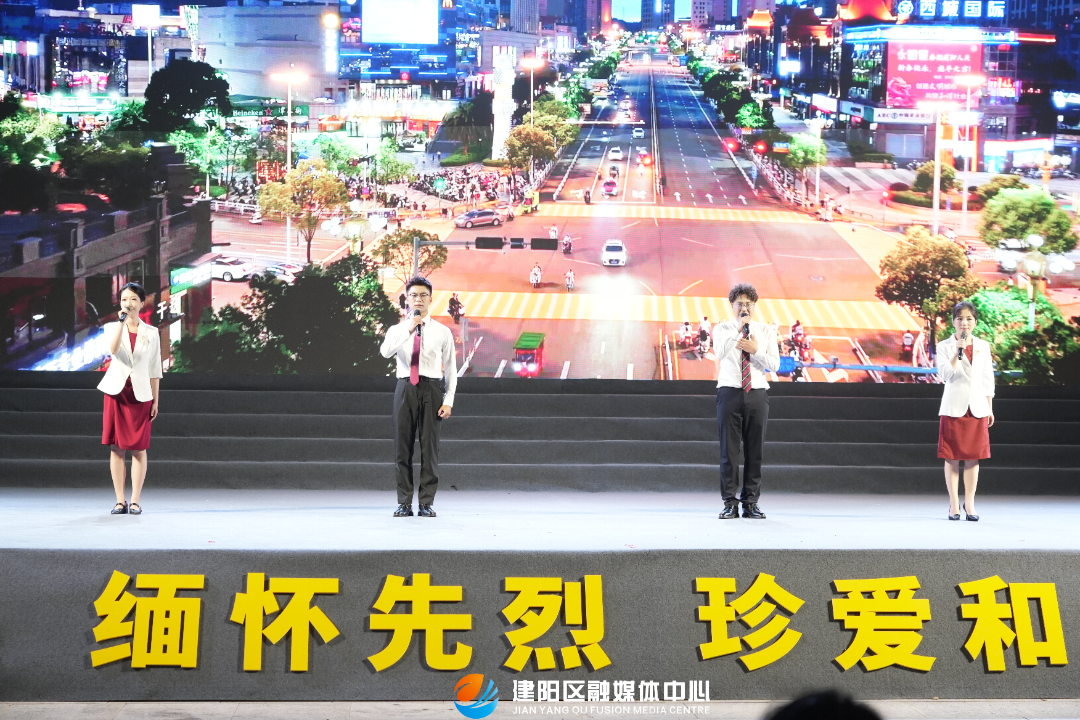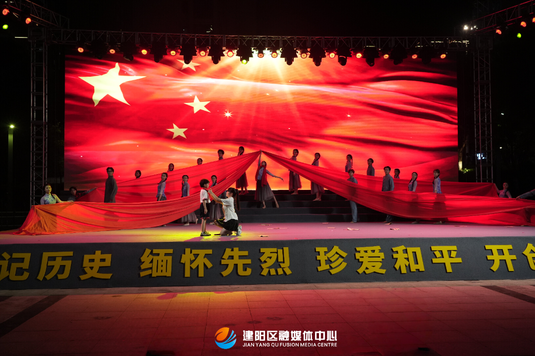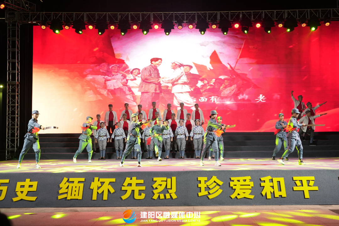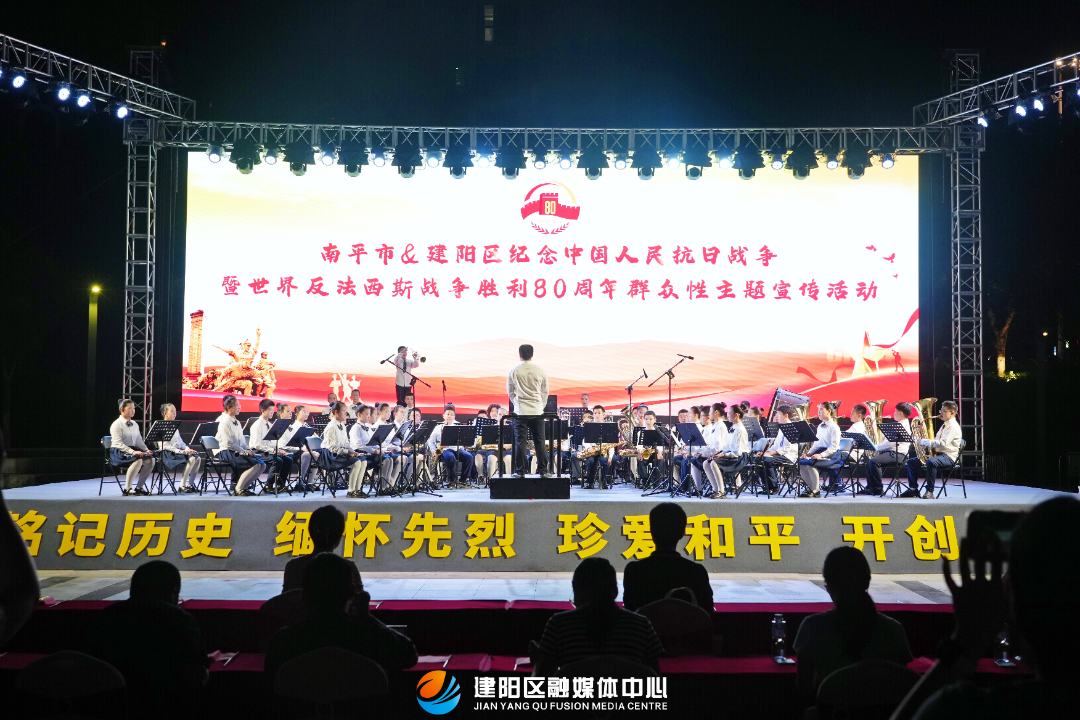 8月30日晚,由南平市委宣傳部、建陽區委宣傳部、建陽區人民武裝部主辦的紀念中國人民抗日戰爭暨世界反法西斯戰爭勝利80周年群眾性主題宣傳活動在建陽區人民公園舉行。南平市委宣傳部部務會成員、市委講師團團長戴嵐,市委老干部局副局長、市老年大學副校長蔡猷全,市國動辦黨組成員、副主任魏隆海,區領導鄭順蓮、馮曉煜、陳莉娜、黃輝出席。 活動在交響管樂《在太行山上》的激昂演奏中拉開序幕,鏗鏘有力的旋律,為整場演出奠定了莊重而深情的基調。