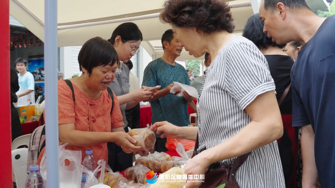 攤主:“這個是我們彭墩祖傳的蔥花餅,今天搞活動帶了有100多斤餅,賣的差不多了。” 顧客:“我感覺這次來北門趕集,有很多當地的特色,比如說彭墩的蓮子,我希望這種趕集的活動要多組織幾次,把當地的土特產送到這個集市當中來。” 此次展銷會不僅是一場“舌尖上的盛宴”,更是搭建產銷對接橋梁、助力鄉村振興的生動實踐。