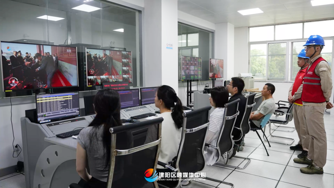9月3日一早,國網建陽區供電公司營銷部用電檢查班的工作人員就守候在區融媒體中心機房,確保機房當天供電保障安全可靠。約90分鐘的大會直播,工作人員全程守護,和區文體旅局、區融媒體中心、福建省廣電網絡建陽分公司工作人員一起,密切關注各類電力設備的運行參數,隨時準備應對可能出現的突發情況。